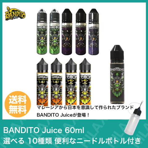 BANDITO Juice 60ml 商品説明 マレーシアから日本を意識して作られたブランドBANDITO Juiceが登場! ラベルには兜がデザインされ、フレーバーも日本語表記がなされています。